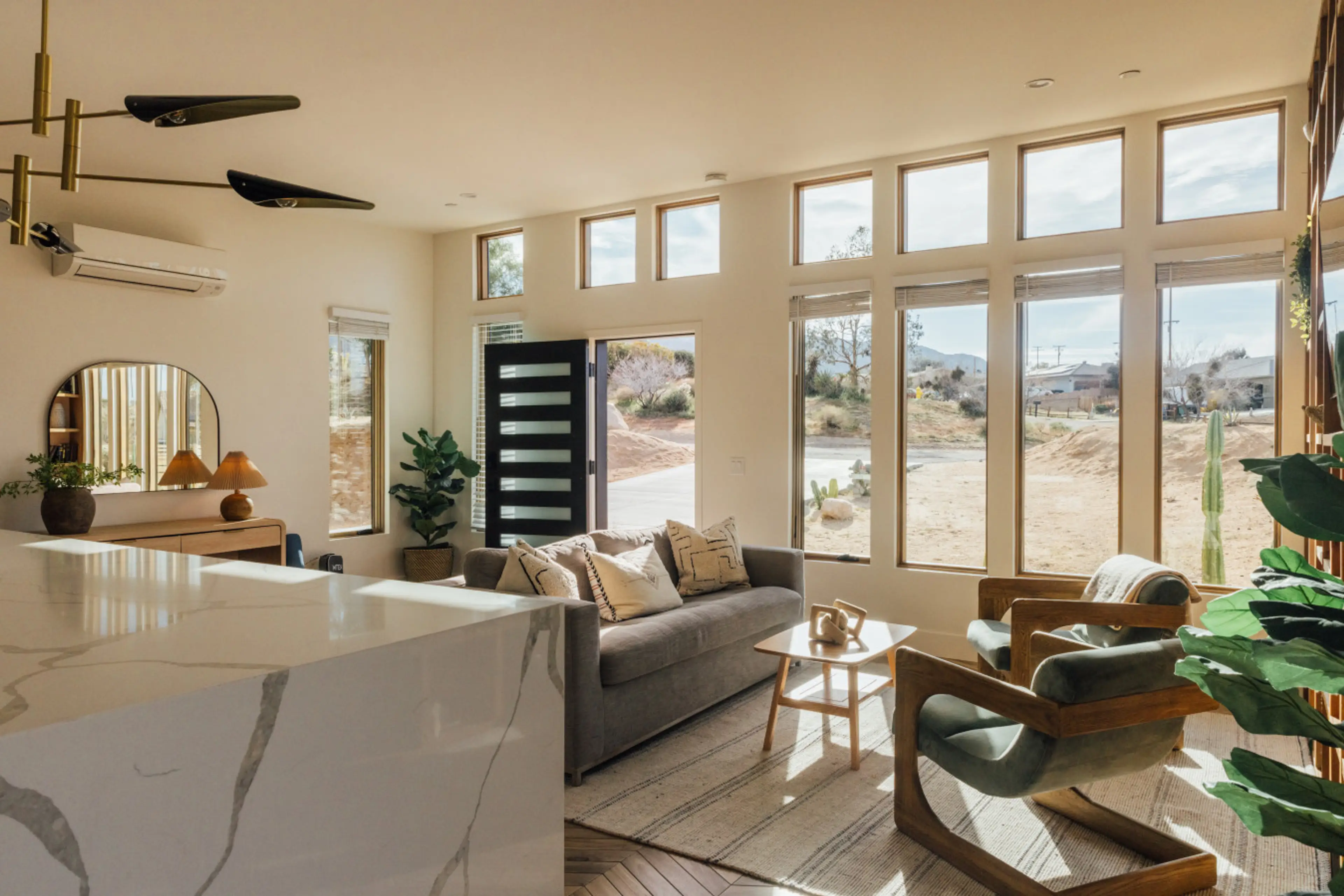 Your Joshua Tree escape starts here. Just 5 minutes from the national park entrance, Casa Mariposa is a design-forward desert hideaway made for unforgettable stays. This modern 2-bedroom retreat pairs sleek architecture, statement style, and expansive mountain-view windows with the kind of outdoor s...